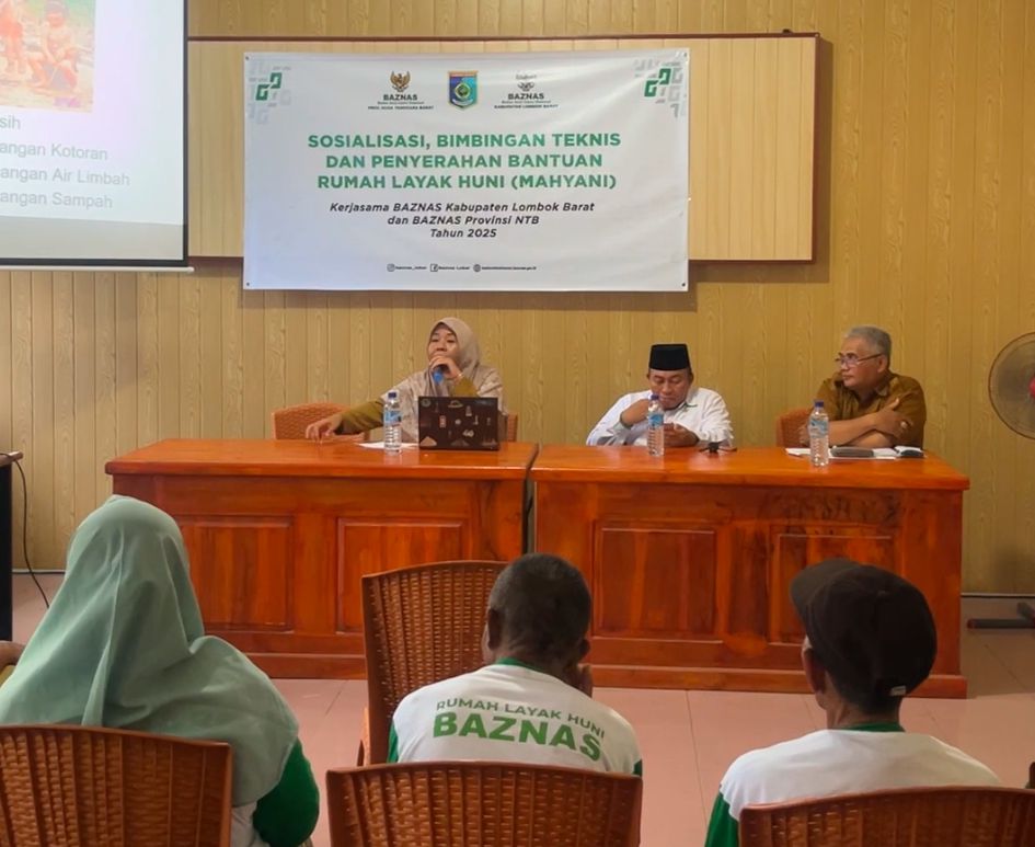 Editoriallombom.com, LOMBOK BARAT – Badan Amil Zakat Nasional (BAZNAS) Kabupaten Lombok Barat (Lobar) bekerja sama dengan BAZNAS Provinsi Nusa Tenggara Barat (NTB) menggelar kegiatan Sosialisasi, Bimbingan Teknis, dan Penyerahan Bantuan Rumah Layak Huni (MAHYANI) Tahun 2025 di Aula Kantor Desa Taman Ayu, Kecamatan Gerung, Selasa (4/11/2025).