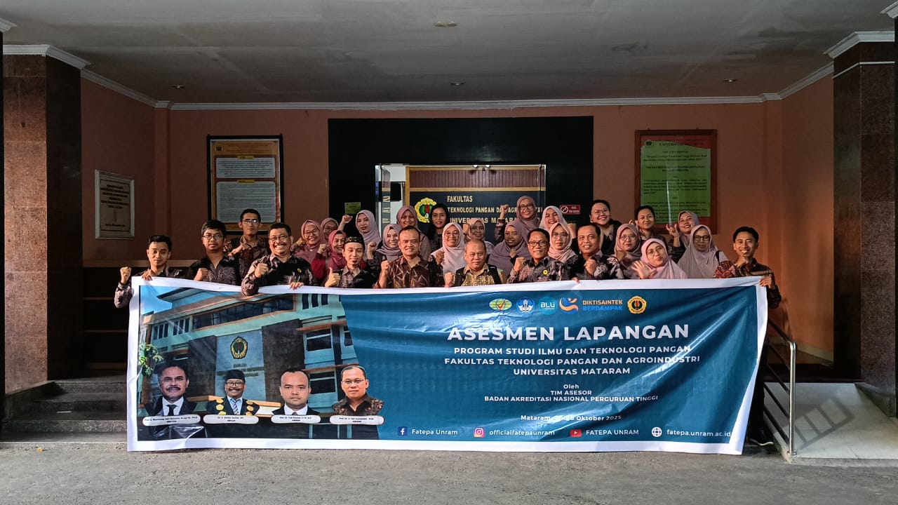 BAN-PT menugaskan dua asesor untuk melakukan asesmen lapangan di Prodi Ilmu dan Teknologi Pangan Universitas Mataram pada 6–8 Oktober 2025, yakni Prof. Dr. Ir. Feri Kusnandar, M.Sc. (Institut Pertanian Bogor) dan Prof. Dr. Yudi Pranoto, S.T.P., M.P. (Universitas Gadjah Mada).